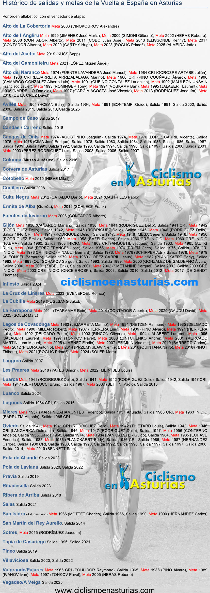 Todas las salidas y llegadas que ha habido de La Vuelta: