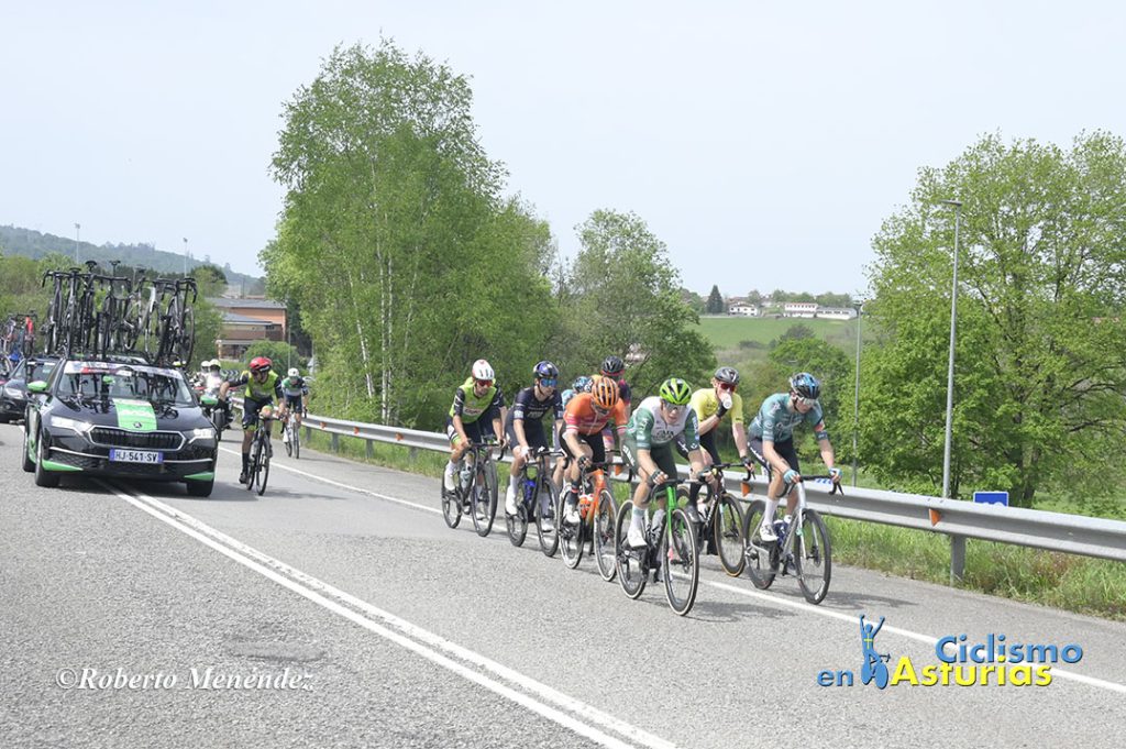 Los primeros kilómetros se rodaron a gran velocidad hasta que se configuró una escapada compuesta por once corredores, entre los que se encontraba el asturiano Eduardo Pérez Landaluce, del equipo Ovidos, que buscaba puntuar en las metas volantes para hacerse con el maillot de esta clasificación, tal como consiguió al final.
