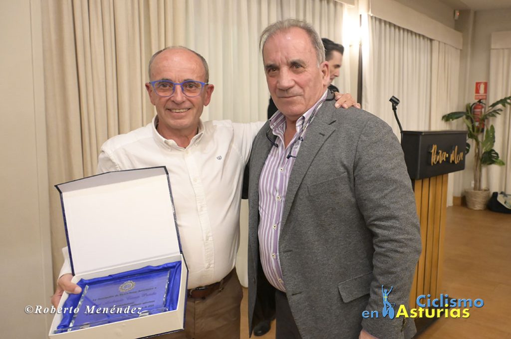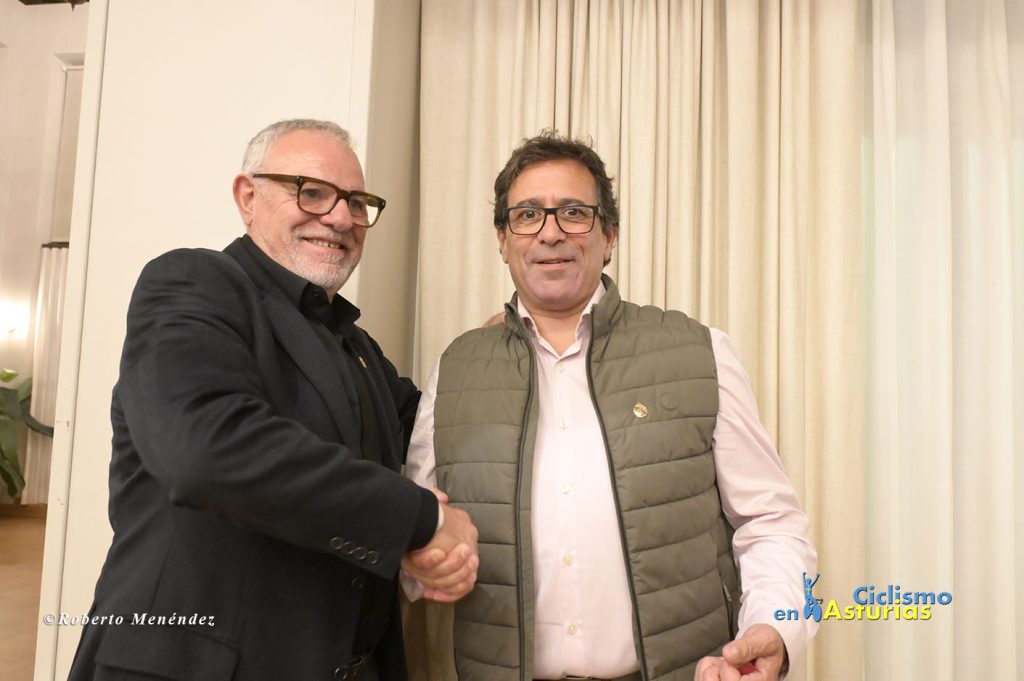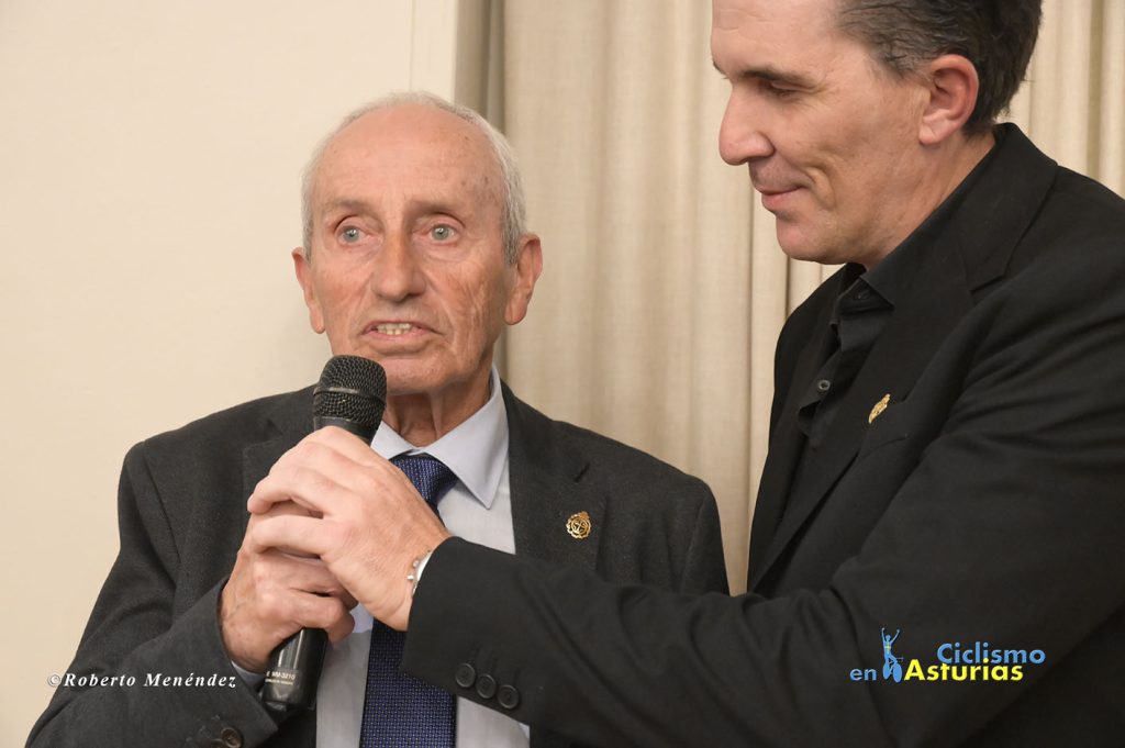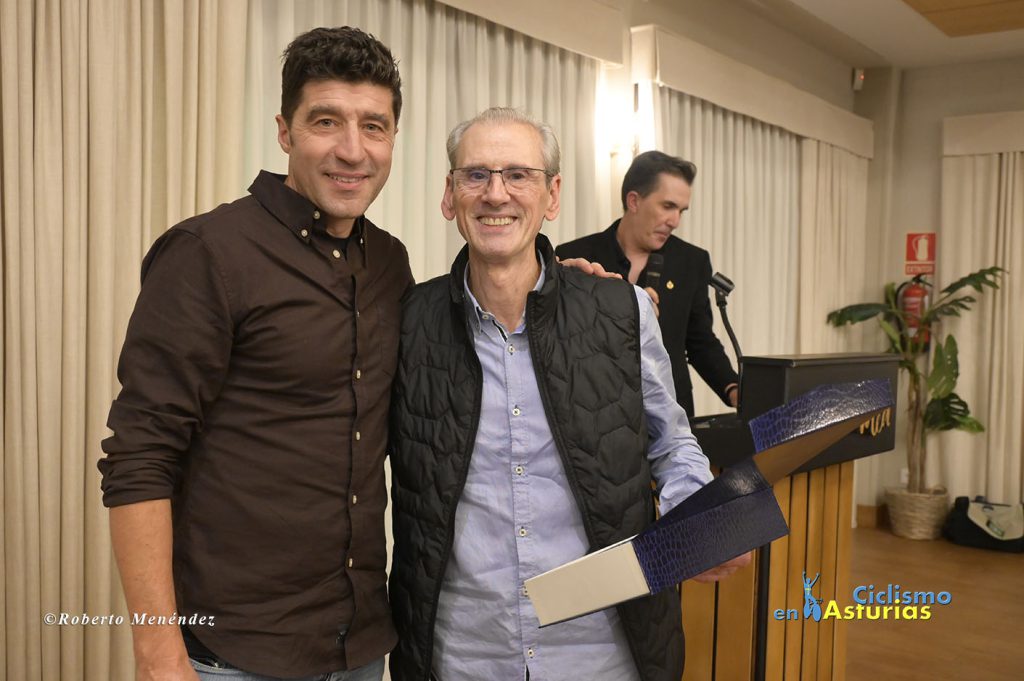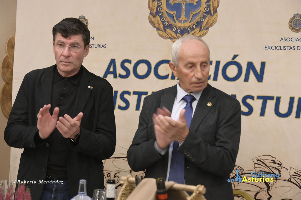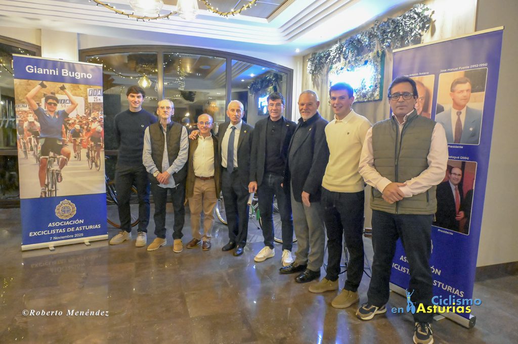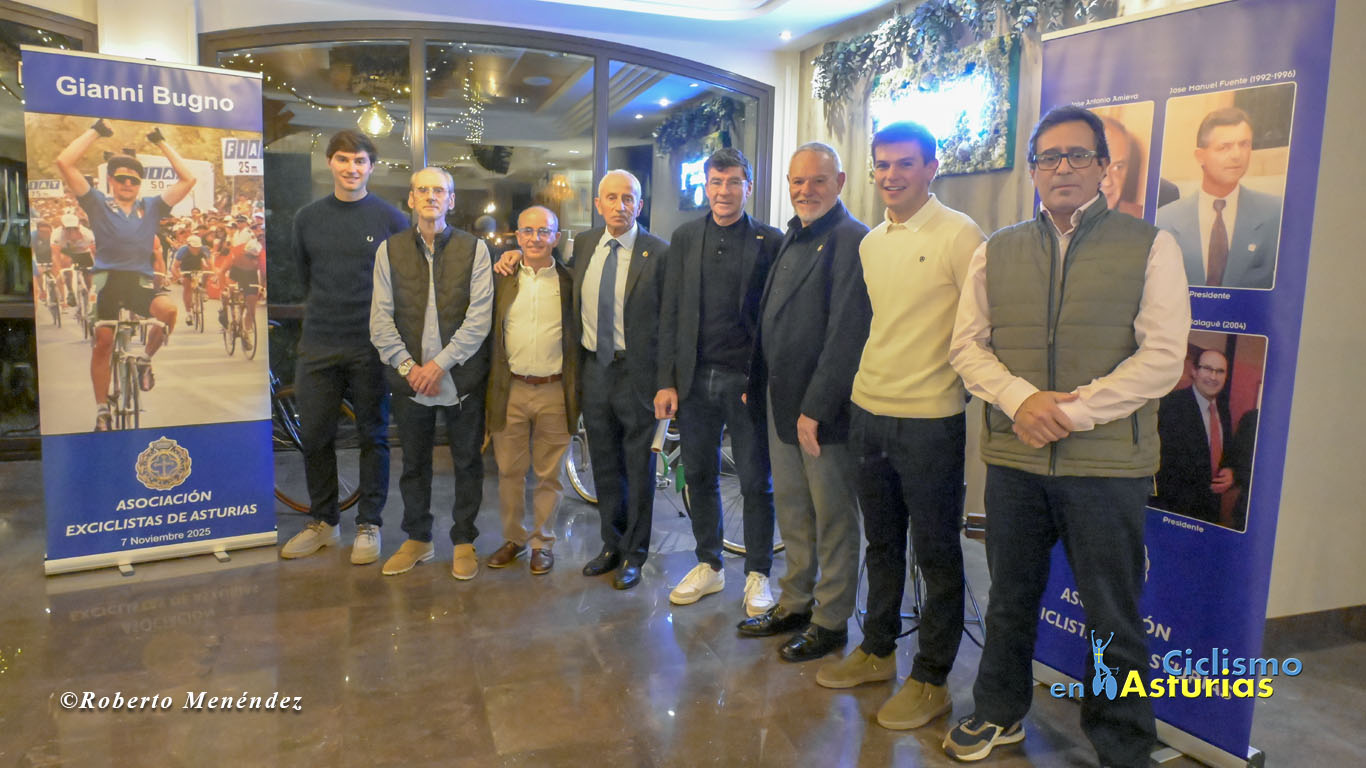 Una de las figuras del ciclismo más destacadas de todos los tiempos, Gianni Bugno, recibió la insignia de oro de la Asociación de Exciclistas de Asturias de mano del presidente, Antonio Menéndez. Bugno, el mayor rival de Indurain en los primeros Tour de Francia del navarro nunca consiguió vestirse de amarillo en los Campos Eliseos, pero cosechó multitud de triunfos en carreras de un día y por etapas, destacando el Giro de Italia de 1990 y los campeonatos del mundo de 1991 y 1992. Otro de sus grandes hitos es que consiguió ganar etapas en las tres grandes vueltas, logrando imponerse dos veces en la mítica cima francesa de Alpe d’Huez. Siempre destacó por la caballerosidad y su clase encima de la bicicleta como en la victoria obtenida en 1998, año de su despedida, en la etapa de la Vuelta a España donde atacó con un demarraje seco que puso en pie a toda la audiencia española con una memorable llegada a Canfranc.