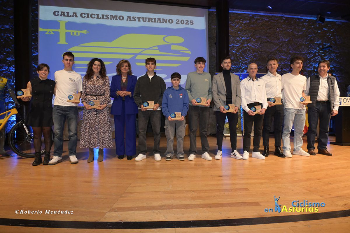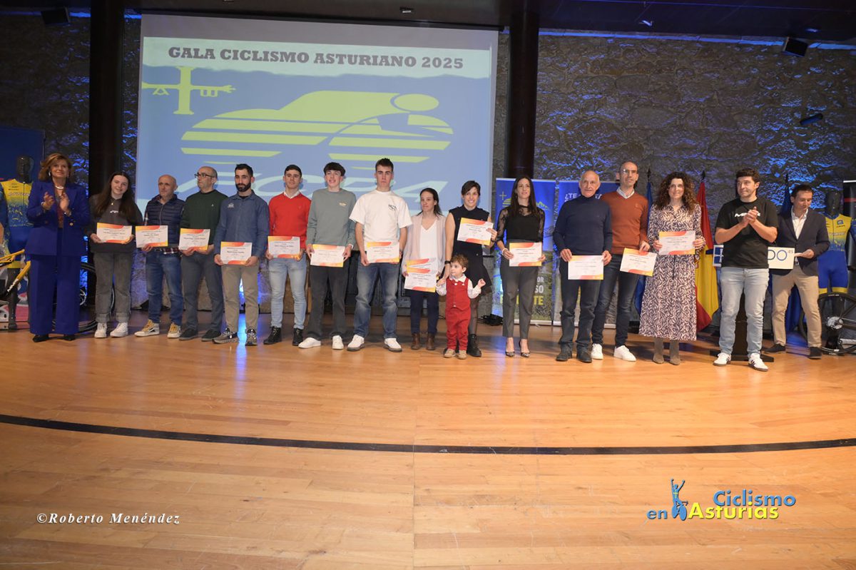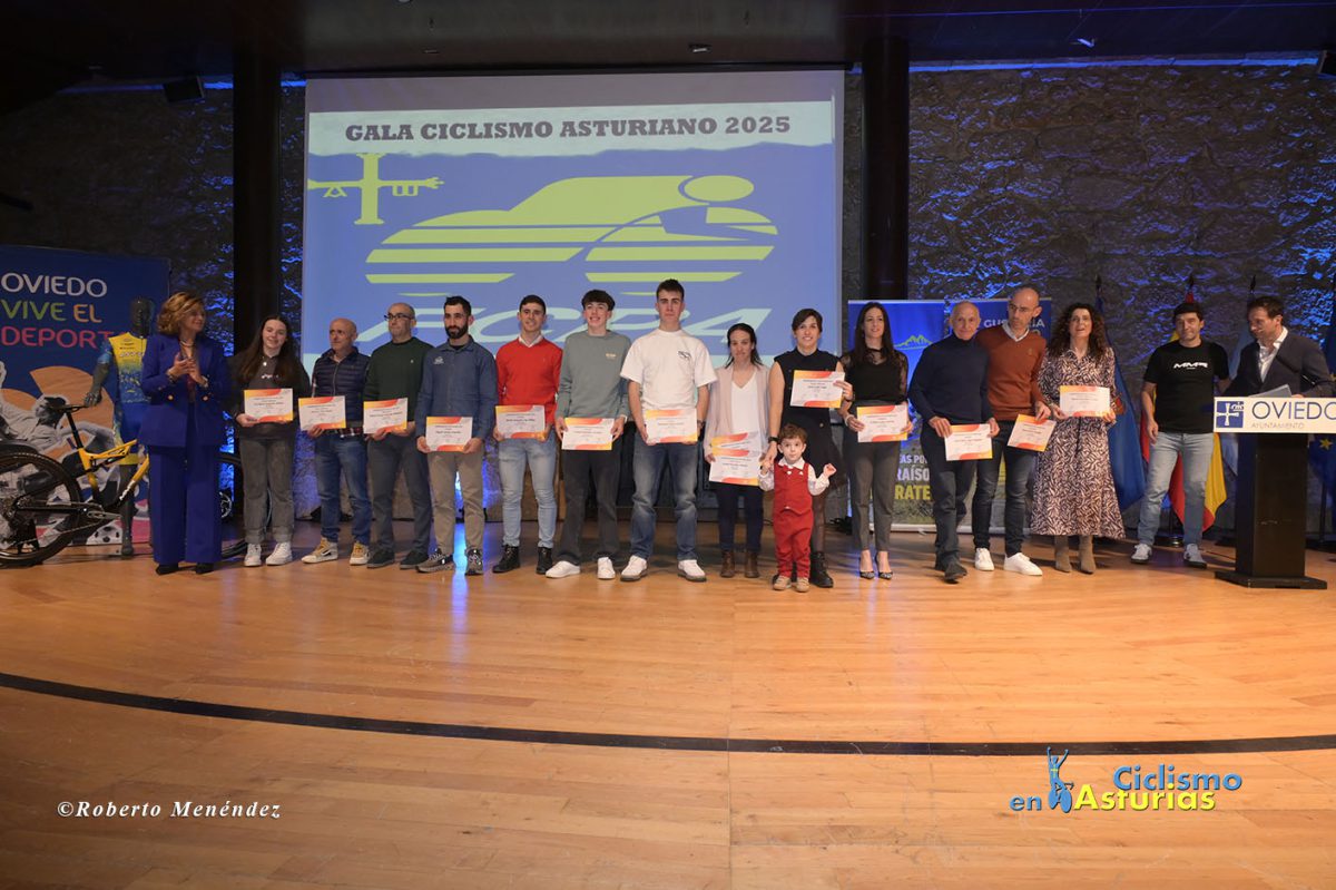 Todas las disciplinas y especialidades del ciclismo tuvieron su reconocimiento en este acto que contó con la presencia de la concejala de Deportes de Oviedo, Conchita Méndez, y el presidente de la Federación, Manuel Prieto, además de los exciclistas Chechu Rubiera, Manuel Jorge Domínguez, y Santi Pérez, entre otros.