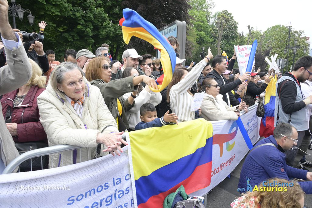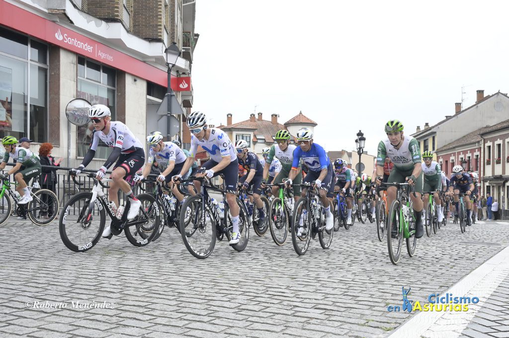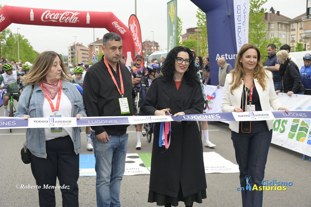 La consejera de Cultura, Política Llingüística y Deporte del Principado de Asturias, Vanessa Gutiérrez, acompañada de autoridades locales, cortó la cinta que inauguraba la cuarta y última etapa de la Vuelta Asturias 2026. Tras la salida en Lugones, los primeros kilómetros discurrían por el concejo de Siero y al paso por El Berrón el primer intento de fuga lo provocaba el corredor Viktor Bugaenko al que más tarde se le unieron Eduardo Pérez-Landaluce y Miguel Heidemann, pero la escapa no llegó lejos y muy pronto fueron absorbidos por el pelotón.