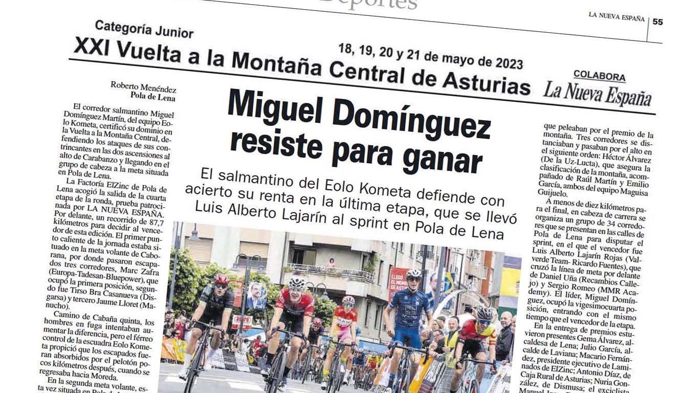 La Nueva España, diario oficial de la Vuelta a la Montaña Central de Asturias Junior informó diariamente del desarrollo de la prueba y nos cedió una página con la publicidad de nuestros patrocinadores.